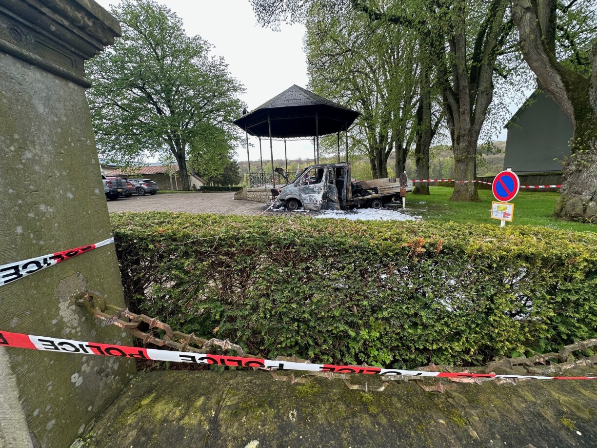 The vehicle, registered to a construction company, was consumed entirely by the inferno.