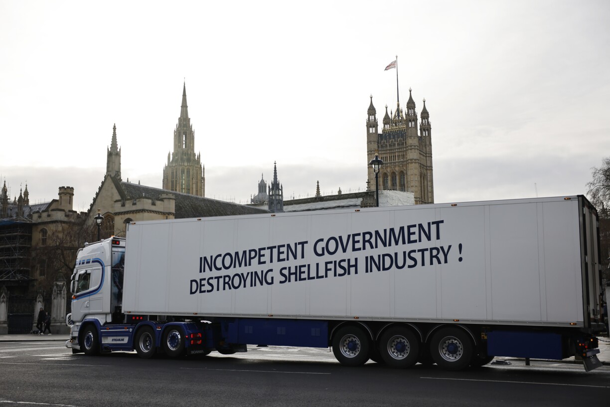 Another lorry carried the slogan ‘Incompetent government destroying shellfish industry!’