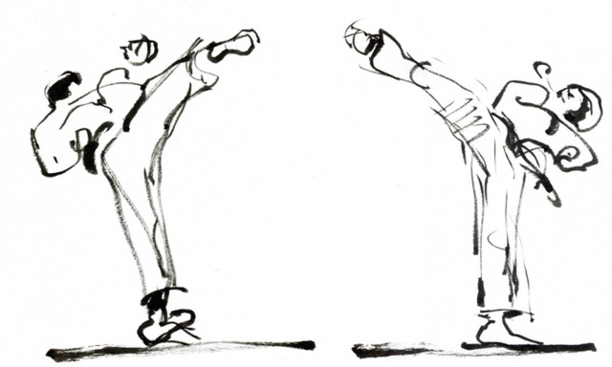 Wordless storytelling with black lines and spots on white paper. My drawing floats like a raft on the stream of the surrounding activity until the time stops. Then the drawing is finished.”
