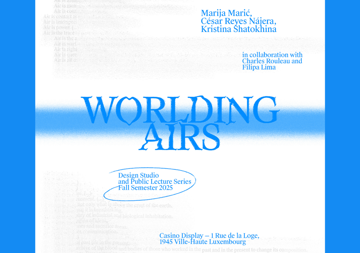 In September, the Master in Architecture at the University of Luxembourg opened the design studio Worlding Airs. Led by Dr. Marija Marić, Dr. César Reyes Nájera, and doctoral researcher Kristina Shatokhina, the studio invites first-semester architecture students to investigate air as an environment, a medium, and a shared commons.