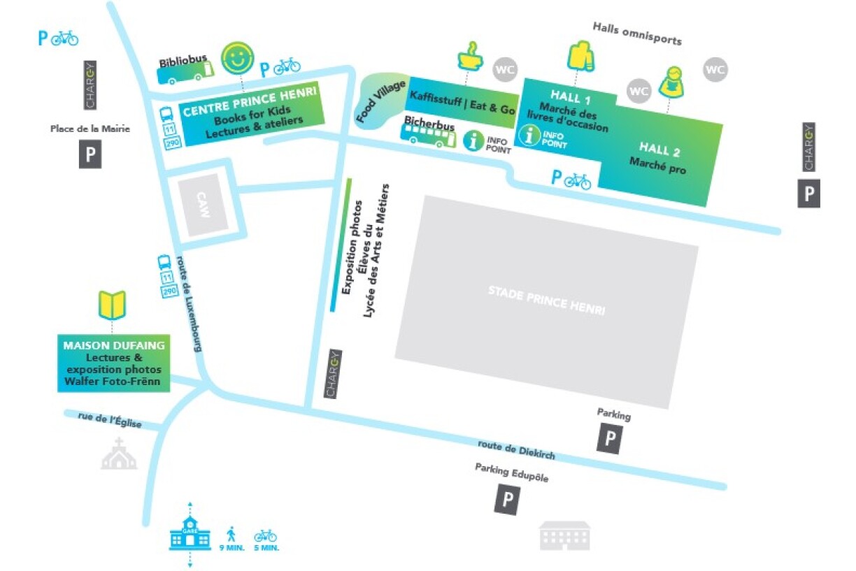 There was no change in location for the Book Days, as per tradition, the fair was held inside the Centre Prince Henri in Walferdange. However, contrary to previous editions, there was no outside tent and exhibitors were divided thematically across three halls: one for professional sellers, one for second-hand books, and one for children’s literature.