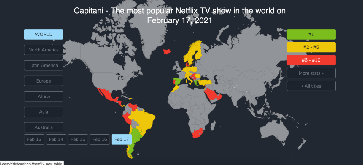 As of 17 February, Capitani was the most-viewed show on Netflix in five countries: Uruguay, Argentina, Spain, Greece, and of course Luxembourg.