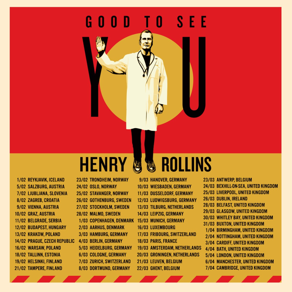 RTL: Now that you are finally back on the road, how is that moment to moment touring life treating you?Henry Rollins: Being on the road is my preferred way of living. It’s a lot of hustle and small living environments but it’s better than being off the road, where life seems to pass me by. The road is as honest as you can handle, so I reckon it’s treating me fairly.