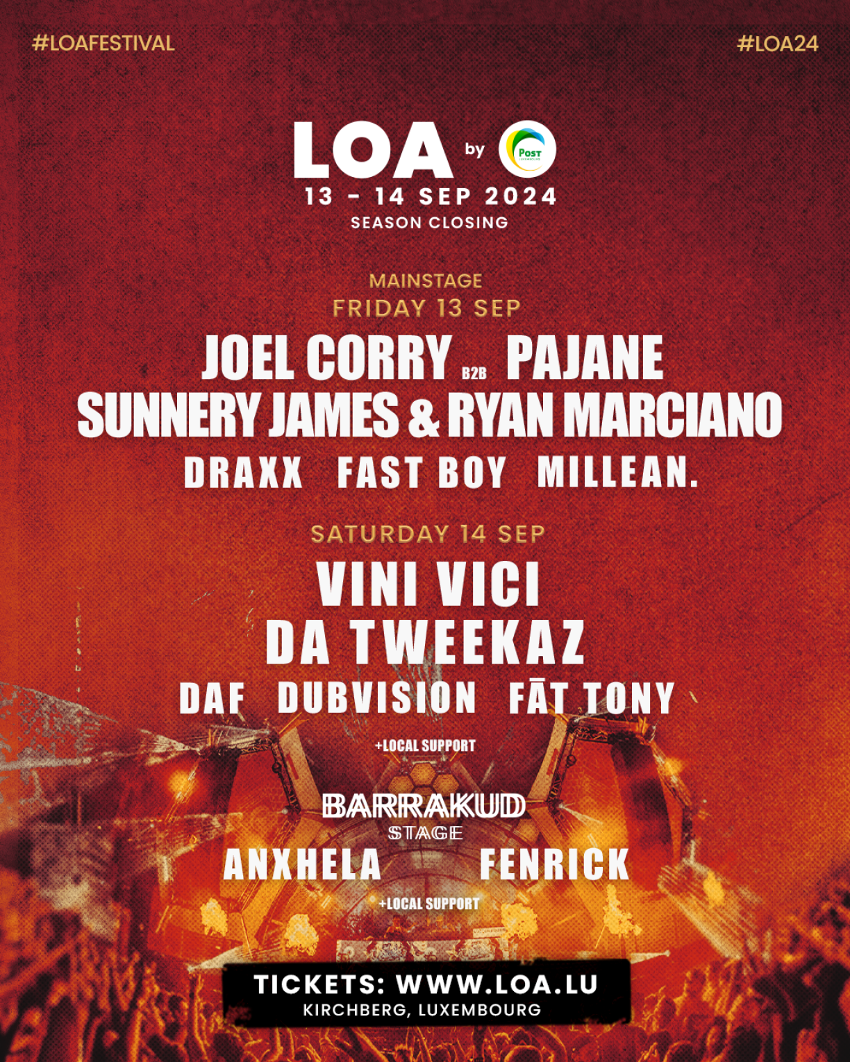 The festival will also continue its partnership with the Barrakud Festival, which received positive feedback for its Barrakud Stage at LOA Esch in May. The Barrakud Stage at LOA will once again feature national and international techno artists, with Fenrick and Anxhela headlining. The local line-up for the Mainstage, Barrakud Stage, and Rave Cave will be announced later.