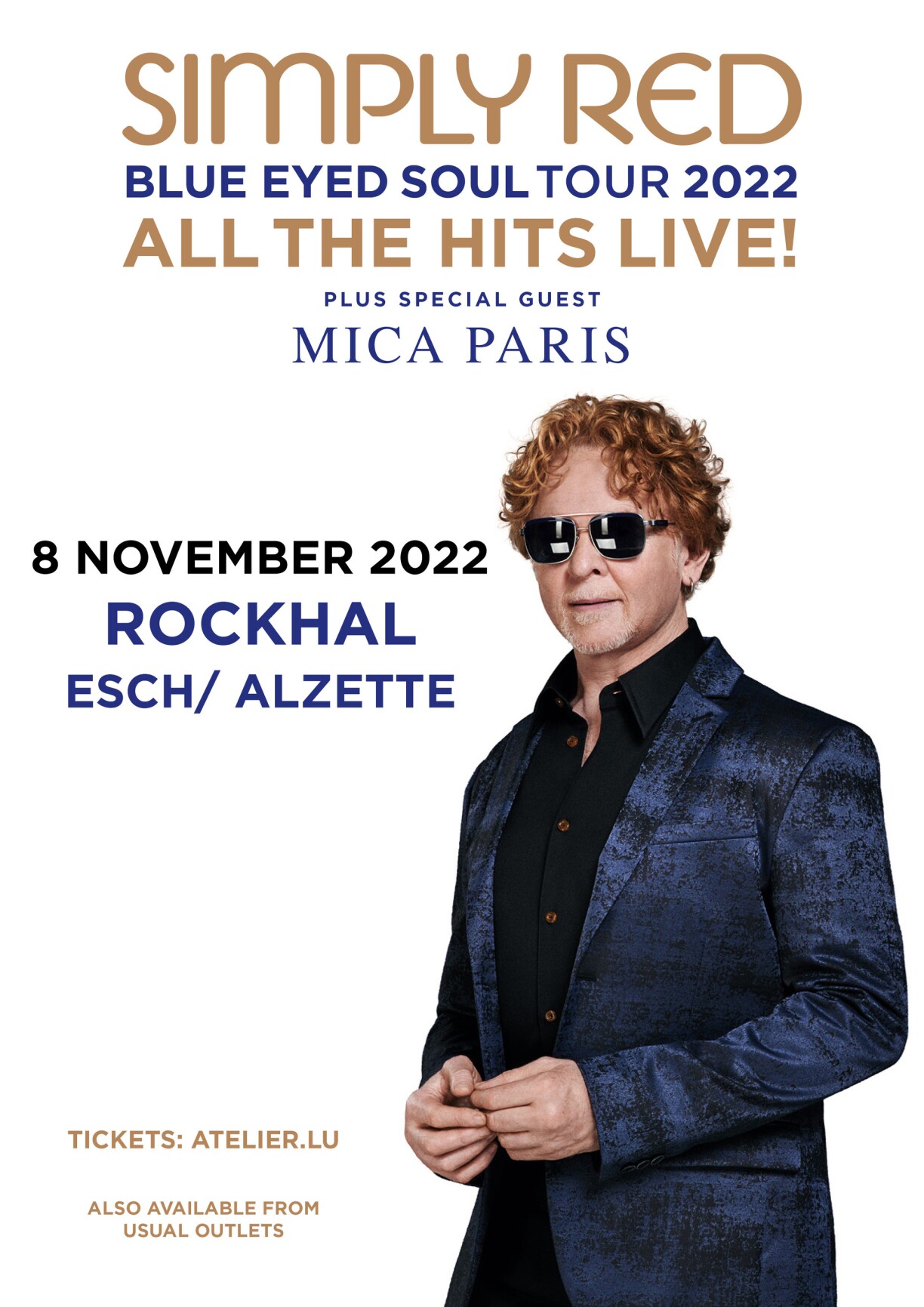TO WIN TICKETS for the show at Rockhal (den Atelier) simply send the RTL Today Radio Crew an SMS/WhatsApp: +352 621 52 5000 and tell them your absolute favourite Simply Red Song (don’t forget to add your name) and you could be in with a shot of seeing the show on Tuesday 8 November - support comes from Mica Paris, ticket information available here.