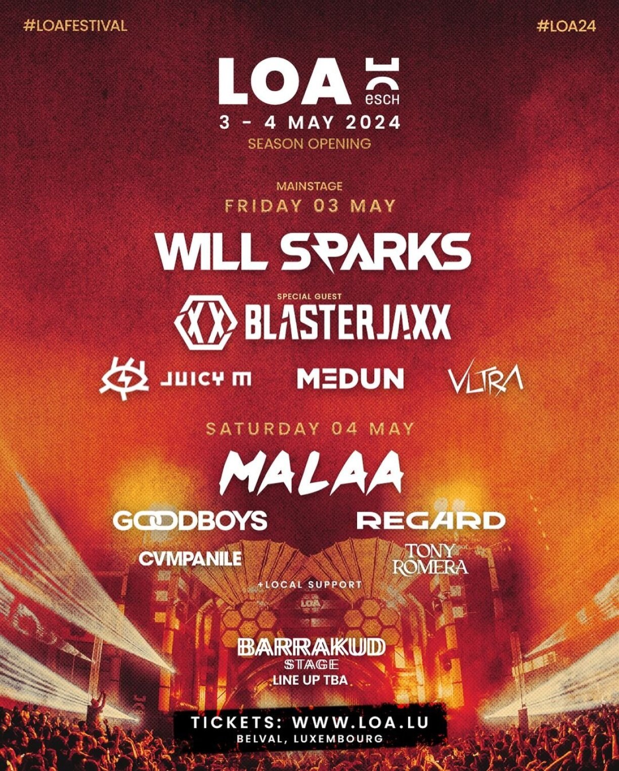 This Friday and Saturday marks the festival’s 2024 launch, with three stages surrounding Belval’s iconic blast furnaces — featuring headliners like French producer Malaa, Australian DJ Will Sparks, and Dutch duo Blasterjaxx.