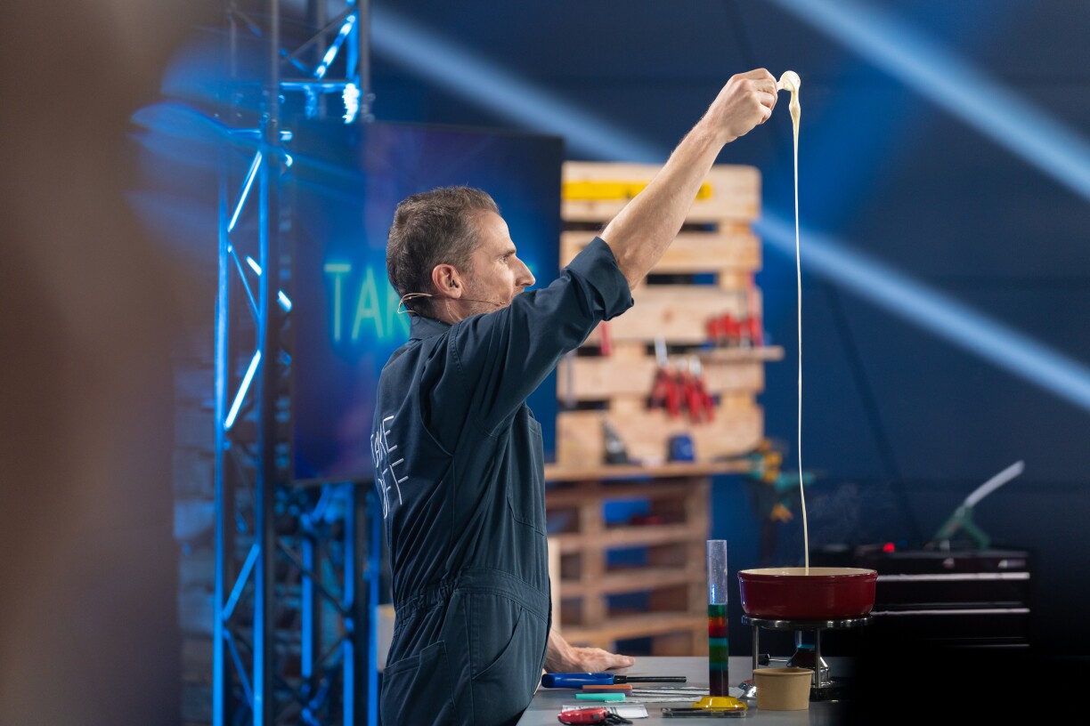 For the main course, the contestants must develop a recipe that allows them to create the longest possible cheese strings from their cheese fondue. And anyone who has ever been in a kitchen knows that perfecting a recipe requires patience and, above all, many attempts. Whoever manages to pull the longest string within one hour moves on to the next round.