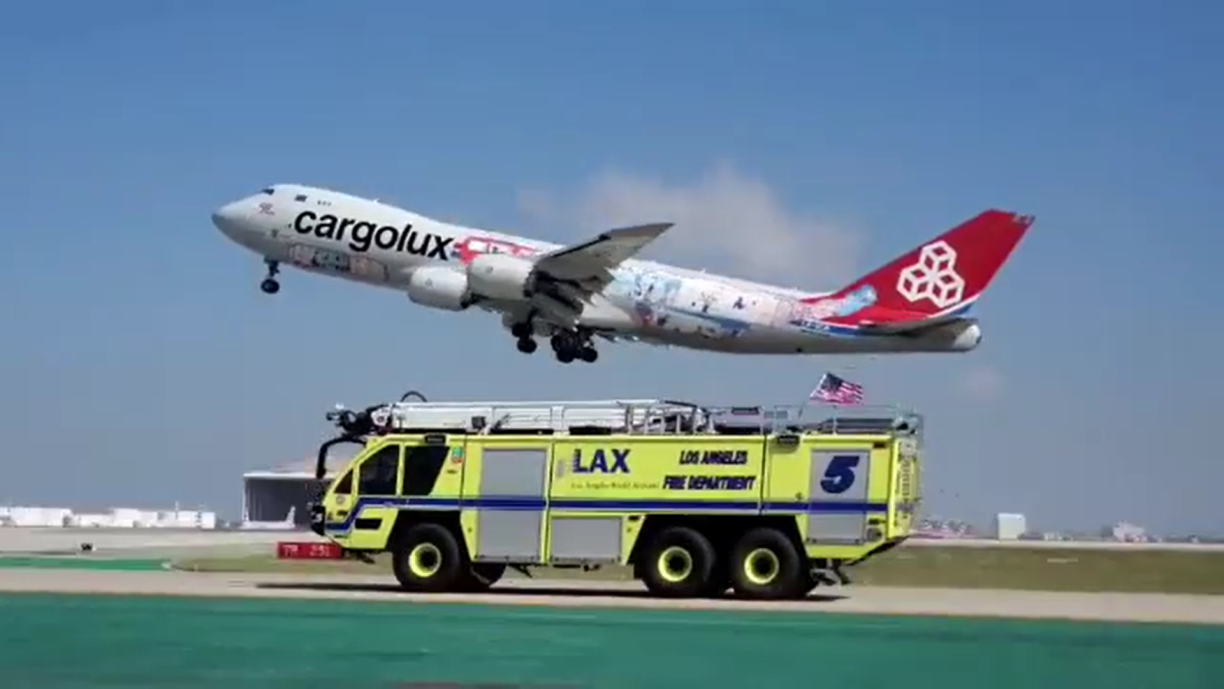 The facebook page Aeronews shared a video of a little take-off battle between a Cargolux 747-8F and a fire truck belonging to the airport.
