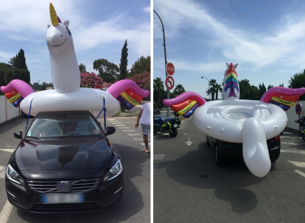 A group of gendarmes from the French Var area had an interesting encounter on Friday 5 July, as they came across a vehicle decked with a giant unicorn-shaped inflatable.