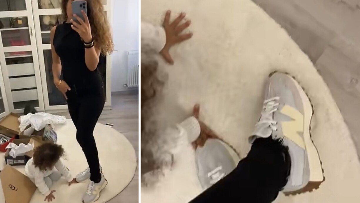 Recently, Poupette Kenza filmed herself in the mirror in an attempt to show off her new snickers. Nothing strange for an influencer if it wasn’t for her daughter playing on the floor, right next to her. In the video, as she presents her new kicks she also steps on Seyana’s hand, who repeatedly says “ouch”. But Poupette Kenza doesn’t seem to even hear her daughter, consumed by producing the video.