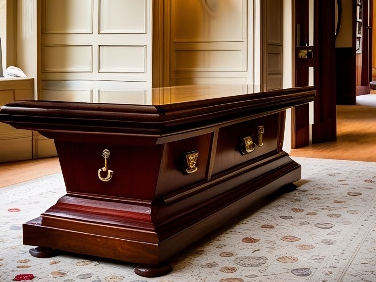 One of the standout pieces, a used coffin, was once a shipping coffin used to transport a body from country to country. Galentine acquired it after it was discarded and transformed it into a coffee table.
