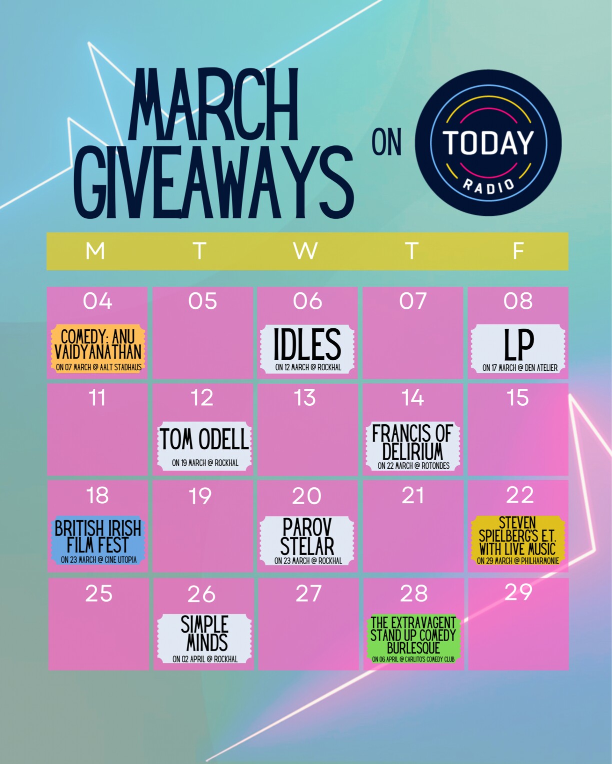 This March, you could win tickets to Tom Odell, Simple Minds, Francis of Delirium, and many more, all thanks to Today Radio! Whether you’re after a night of comedy, majestic music, or indulgent cinema, there’s something for everyone in this month’s giveaways.