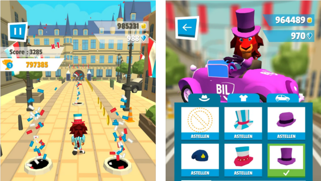 The game falls into the “infinite runner” category a la Temple Run and Subway Surfers, which means that the main character has to be navigated along a never-ending trail until an obstacle is hit. The longer that moment is avoided, the more points and better power-ups. At some stage, Roudy even enters the Grand Ducal Palace in the capital.