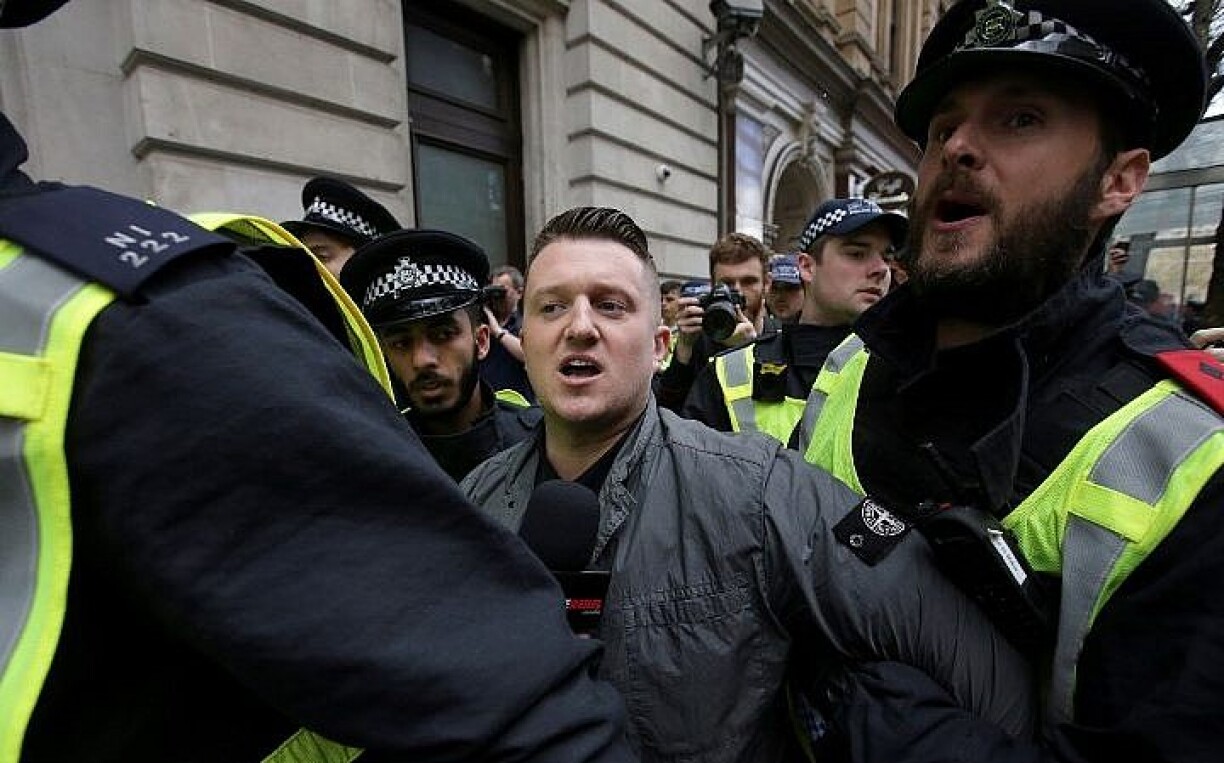 Robinson’s bus, a red double decker, was parked outside the Old Bailey and belonged to supporters of Tommy Robinson.