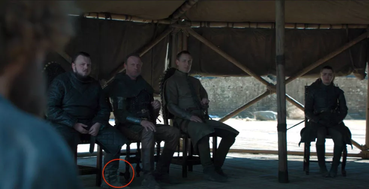 The above and below images show a meeting in King’s Landing in which two of the characters may have magicked up some innovation in the form of plastic water bottles. Both Samwell Tarly and Ser Davos Seaworth are shown with plastic water bottles behind their feet. Whilst plastic bottlers are certainly handy, pollution could ravage the Seven Kingdoms in a much more different way to dragons and White Walkers.
