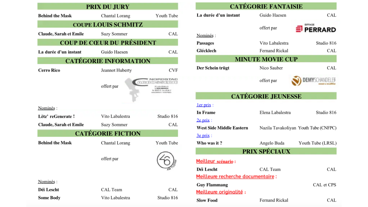 Hosted by Nico Sauber and Christiane Ensch of the Fédération Luxembourgeoise du Cinéma d’Auteur (FGDCA), the cinematic event brought together award-winning directors, amateur cineastes, and up-and-coming talents.