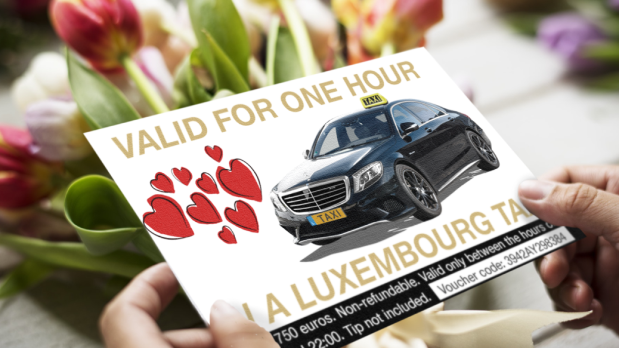 The driver will transport the couple to the airport in Findel as if they were wealthy business people for whom taking local taxis is not a big deal. The taxi will briefly stop in the drop-off lane while the two passengers drink a glass of crémant and take a selfie.