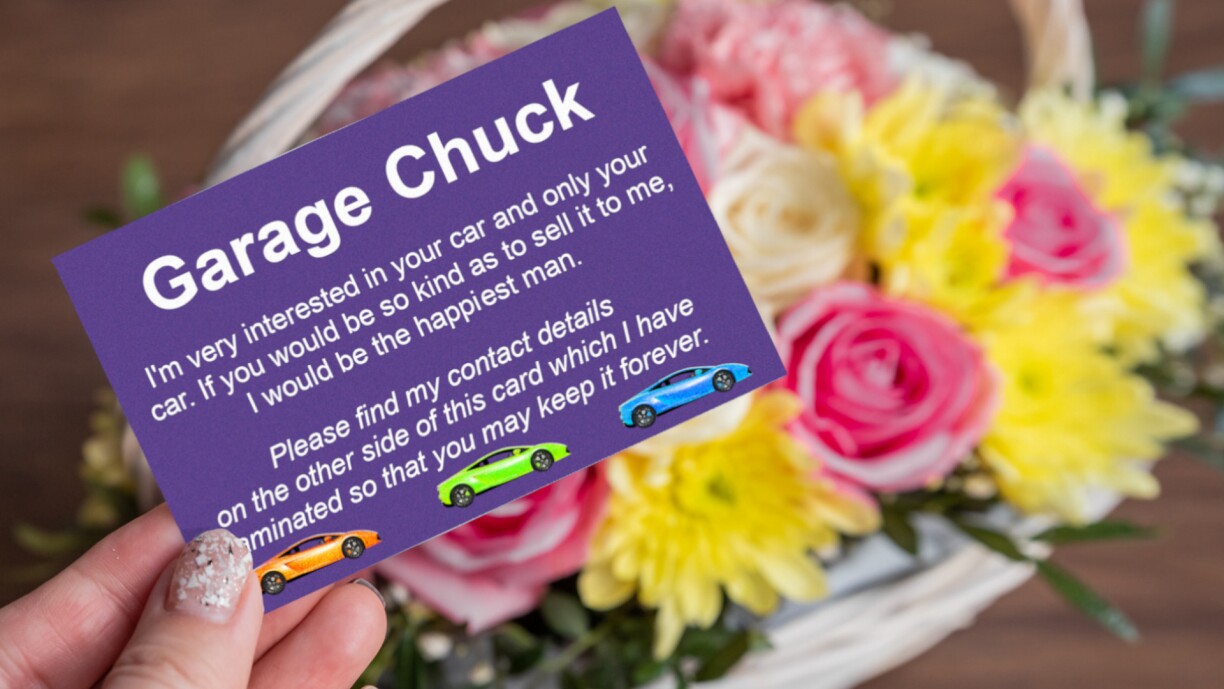 At first you’re angry because you assume the card is from that crazed financial advisor who’s been trying to persuade you to invest in regular olives (not yum), but then you see the card is from a gentleman who owns a garage. Would you believe it? He’s interested in buying your car. He has even laminated the card in plastic so that it will last hundreds of years, allowing you to cherish this memory forever.
