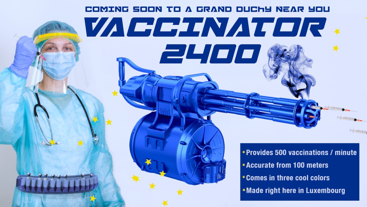 “I read that it might take months to get most of Luxembourg vaccinated,” said Jean Wayne, creator of the Vaccinator 2400. “That’s not fast enough.”