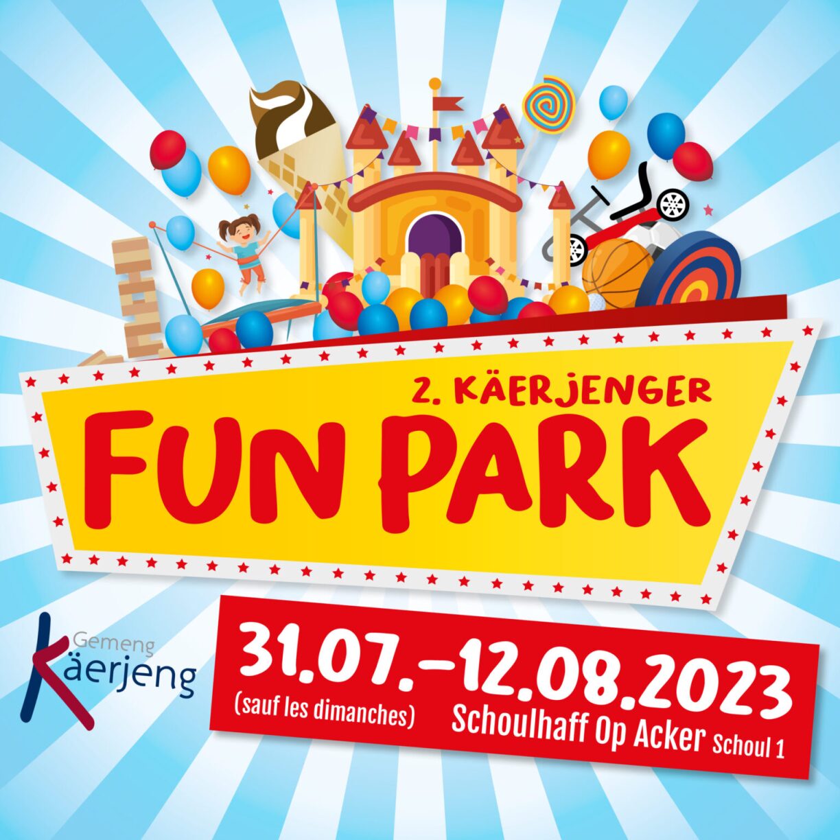 Until 15 August, enjoy the outdoor pool, beach volleyball, mini football, and jumping castles from 14:00 at the Diekirch swimming pool.