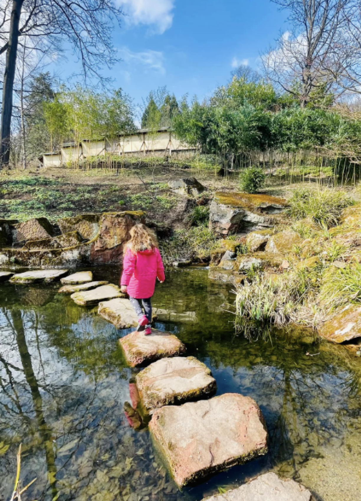Kids loved the sound of the running water, the great variety of plants and trees, the stones on the water that you can step on, and the big figs in the water. A nice little café offers some food, drinks and ice-creams.