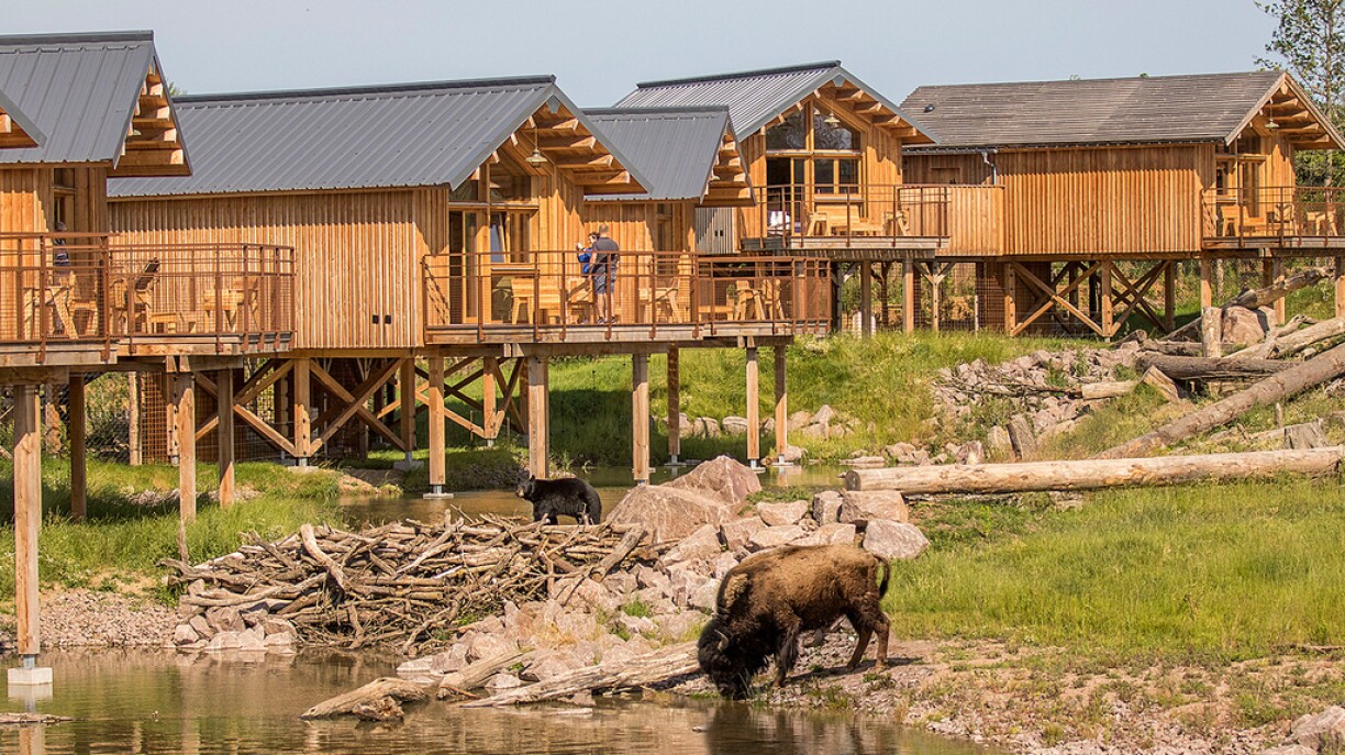 This resort offers many different accommodations, all with the common theme of watching animals. You can rent tree houses, or just a lodge with views of the wolf enclosure.