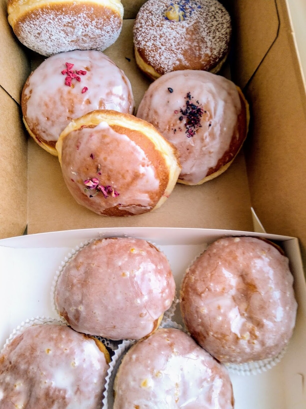 Once inside, a wide array of flavours were available, ranging from traditional rose- or raspberry-jam fillings, to the more extravagant salted caramel or tonka-bean crème patisserie centre. Bewildered by the choice, I ordered one of each.