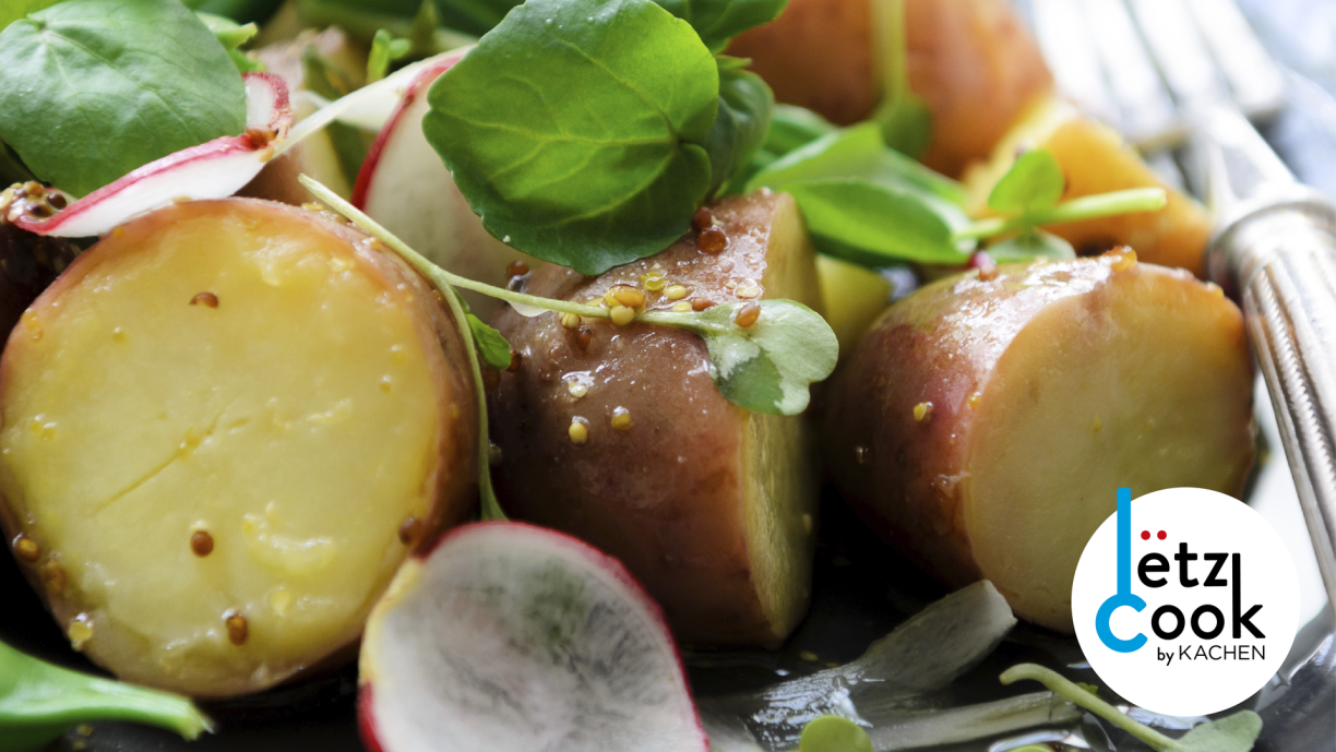 3. Stir in the celery stalks and leaves, parsley, spring onions and radishes, and serve. Drizzle with some more dressing if you like, as the potatoes will soak it up quite quickly.