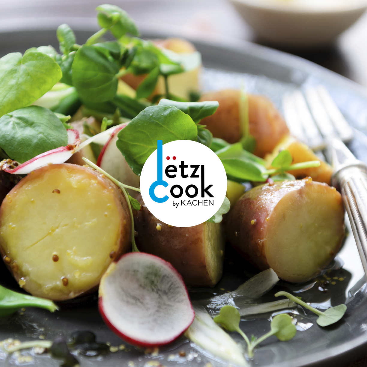 2. Boil the potatoes in salted water until just cooked. Then halve or quarter them, and mix with the salad dressing immediately while still warm. Add the artichoke hearts. Set aside until cool.