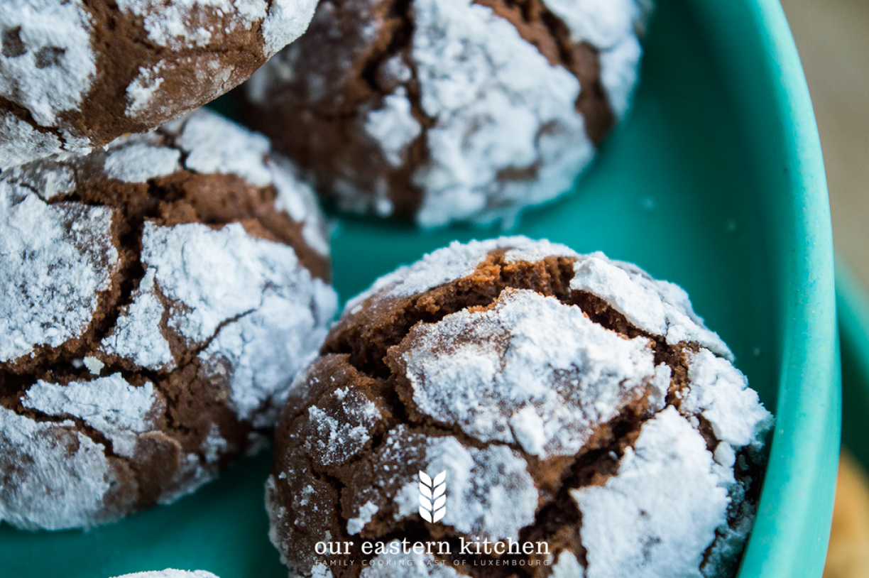 If you can prepare the dough the day before, do. It can be chilled in a fridge overnight, no problem. If the dough is not cold enough, icing sugar will melt into the cookie and you will lose the nice crackle effect.