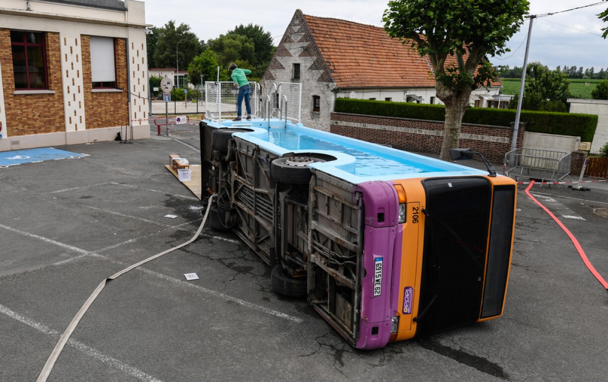 This old bus should have been destroyed but Bufalino tranforms it in a pool-bus. This project saw the day within the context of the 10 years renewal mineral field throw by the Euralens association.