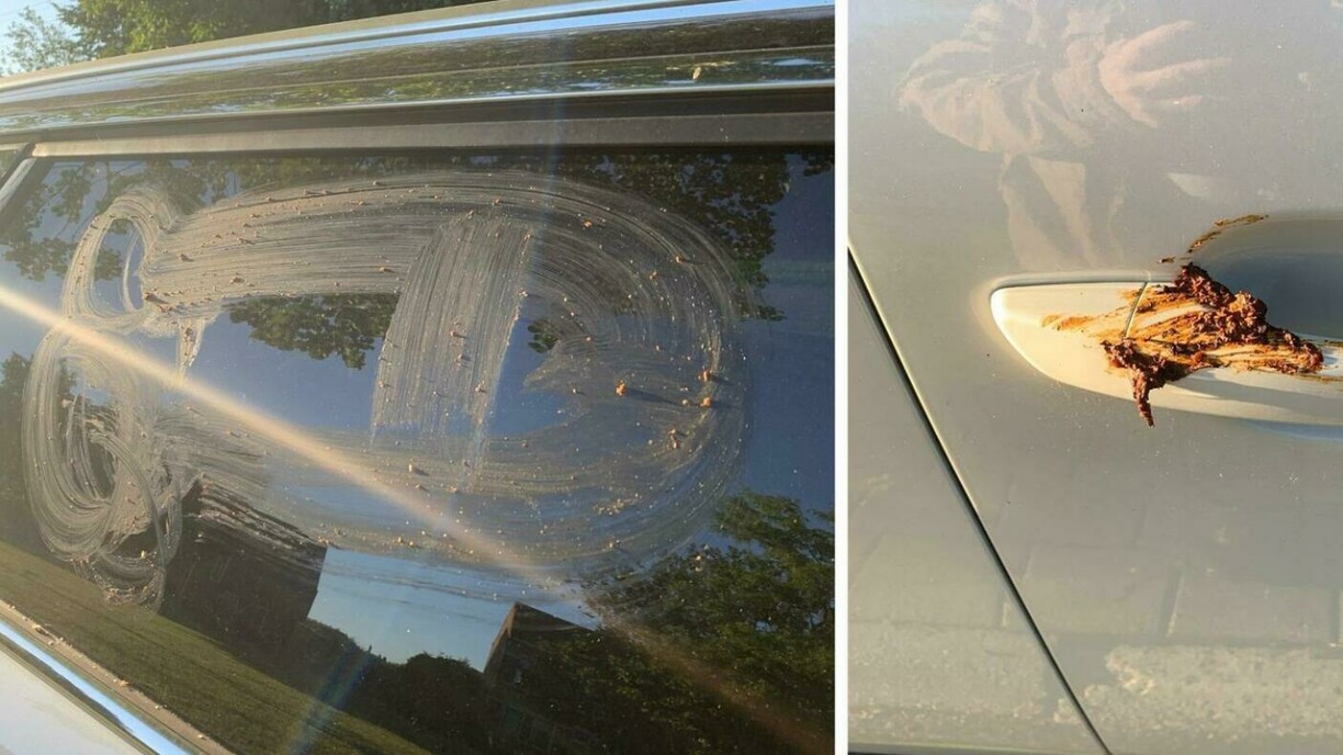But as he approached his car, he was shocked to see that it hads been vandalised – and in quite a disgusting way at that. His white car was completely covered in excrement.