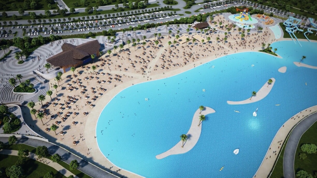 The project has already been interrupted several times, mostly due to the staggering logistics: a surface area of 105,000 square metres, out of which 25,000 will be water and 15,000 sand. The site will further house several bars, as well as extensive areas for water sports and sailing, slides, zip lines, and beach volleyball courts.