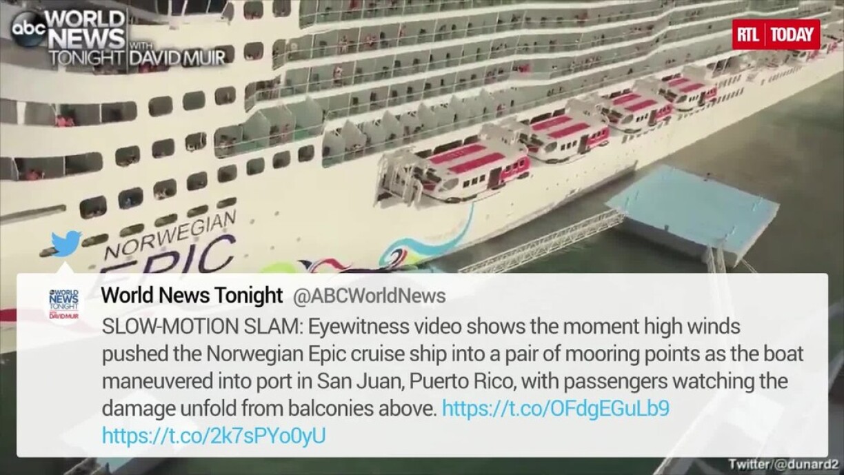 A spokesperson for Norwegian Cruises told the Miami Herald that “prevailing wind” caused the Norwegian Epic to crash and damage two mooring points.