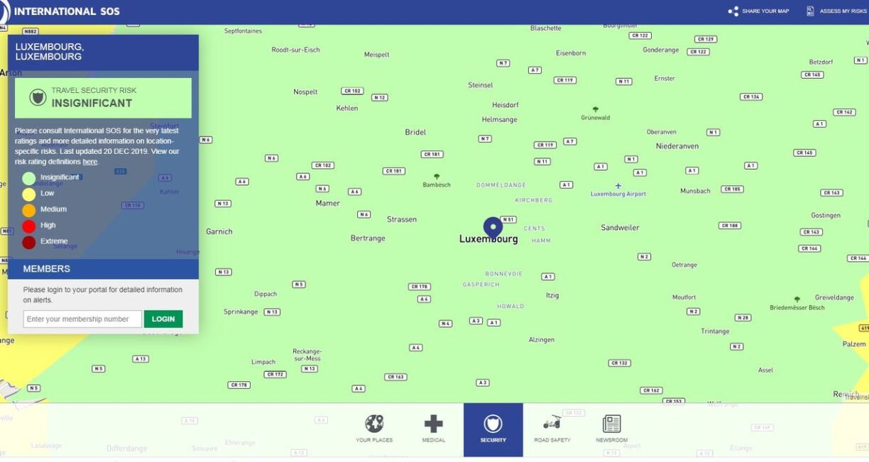 The Travel Risk Map shows users the risk for each destination country. The map is a project led by International SOS, a leading medical and travel security services company.