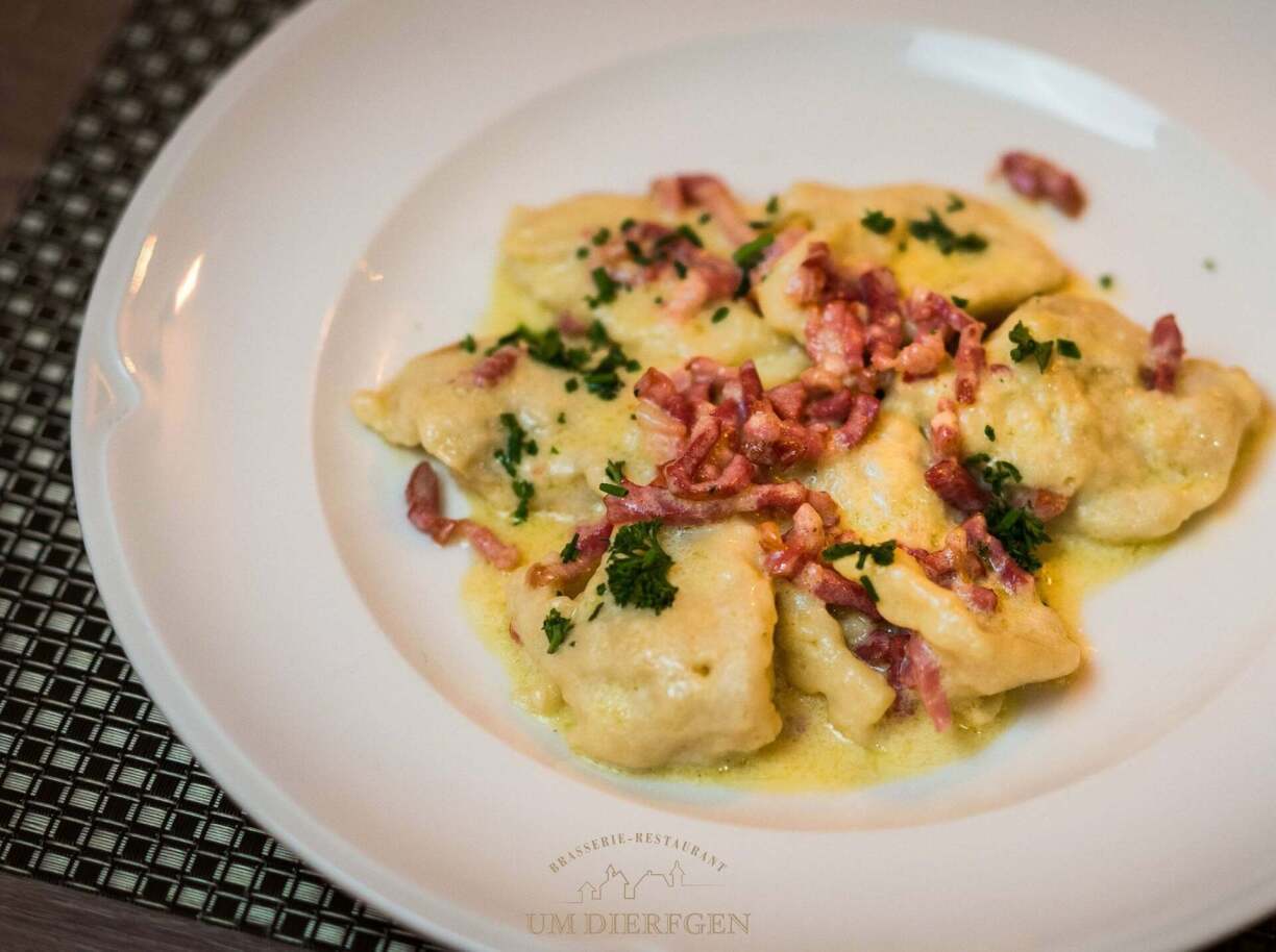 And believe it or not, you can even get a Kniddelen salad in Aspelt. At Am Kraeltgen, Kniddelen are clearly taken seriously – the potential in this Luxembourgish specialty was recognised early on. What you get here is the ‘real deal’, plain and simple – and as a customer, you notice that pretty quickly.
