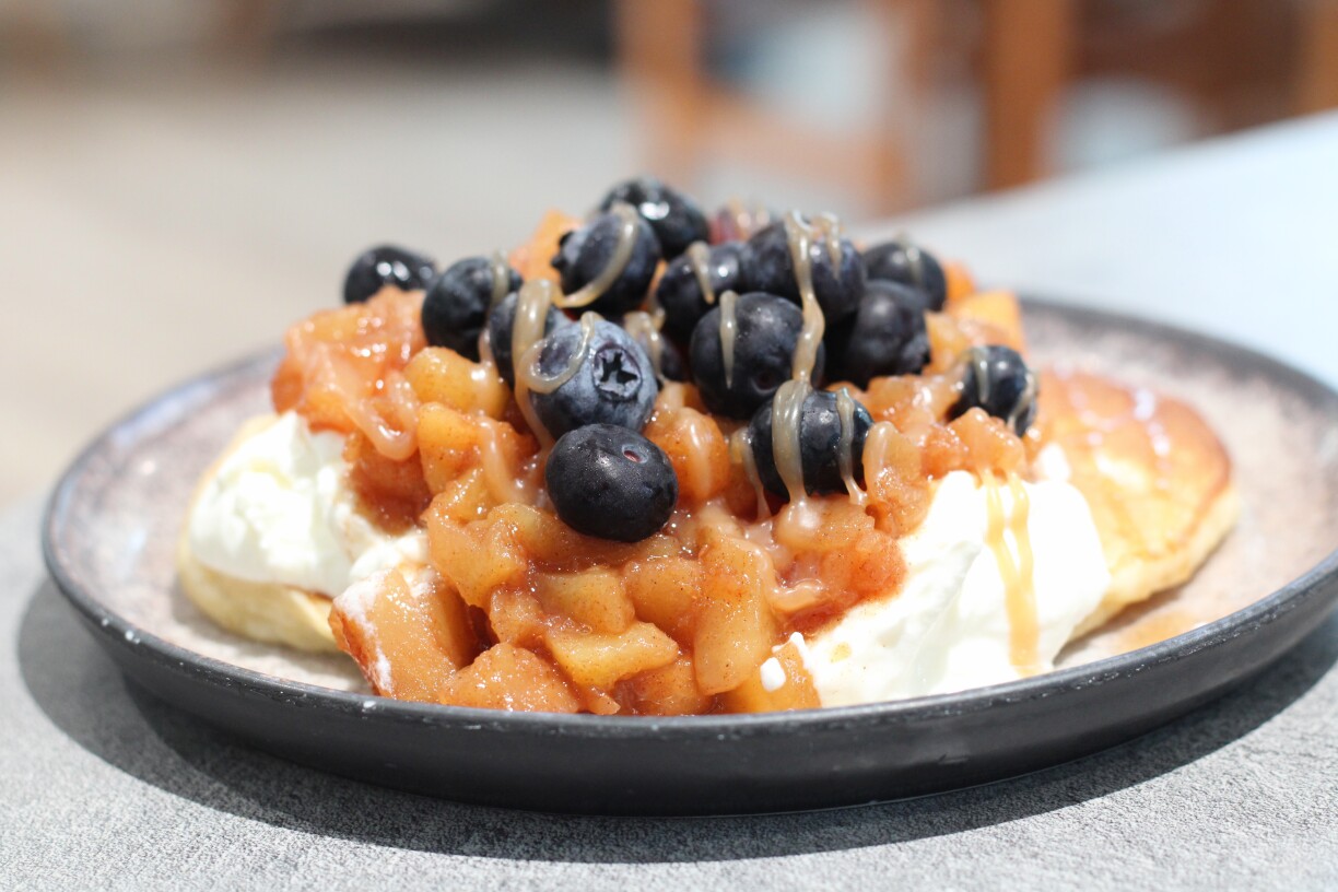 For the food, I went for the sweet option: cottage cheese pancakes (€14.50), an Eastern European classic that felt close to home. They came with Greek yoghurt, homemade salted caramel, cinnamon apple chutney and blueberries. As someone with Polish roots, I vouch that these were genuinely good. Not too heavy, and honestly a healthier alternative to the American-style pancake stacks. The cinnamon apple chutney hit that autumnal comfort spot perfectly for me.