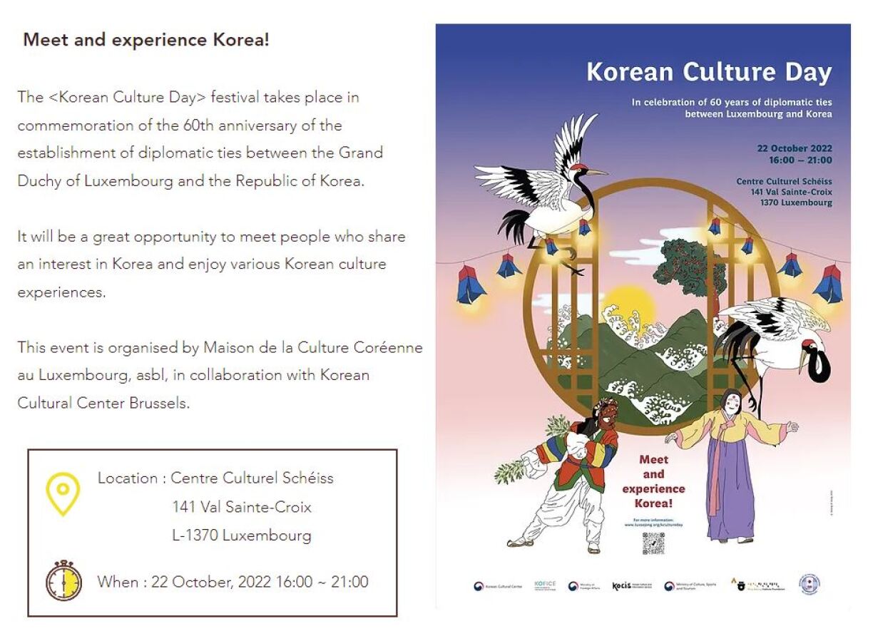 To celebrate 60 years of relations between Korea and Luxembourg, the Maison de la Culture Coreenne au Luxembourg asbl is organising a day around their country, with Korean cuisine, traditional drinks, Korean costumes and games, beauty products as well as live music. Discover Korea through Luxembourg at Val-Sainte-Croix Cultural Center. And before you ask: yes, there will be K-Pop!