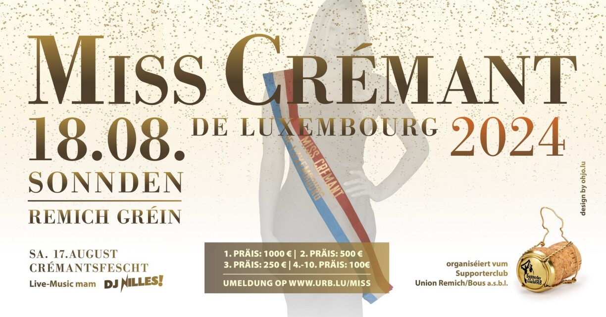 This may just be the most Luxembourgish thing ever, but prepare for Miss Crémant of Luxembourg 2024 to be crowned this weekend in Remich. There will be lots of food and drinks as well as a DJ for those wanting to pop into the party for a little bit.