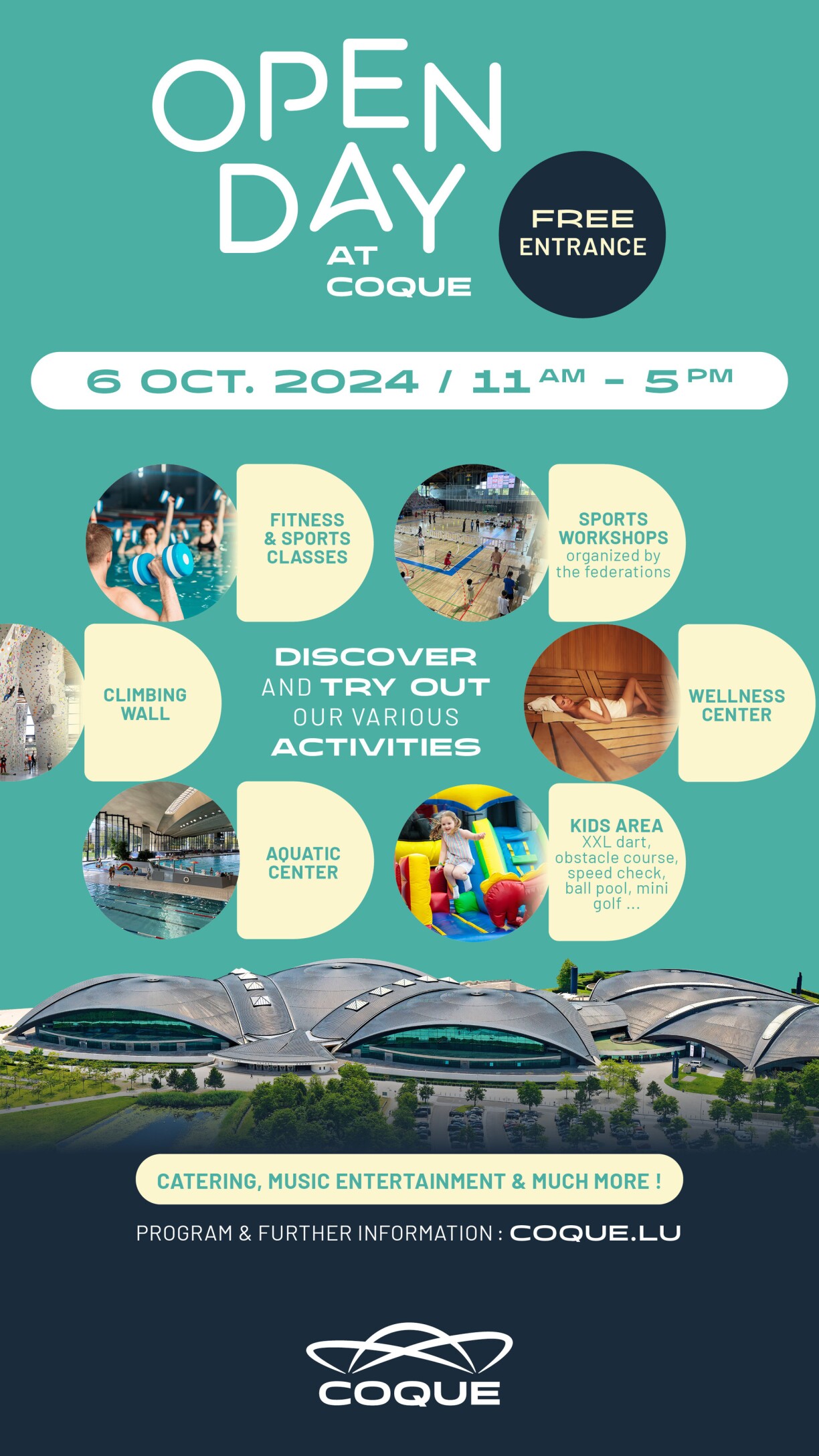 Try out new sports like wall climbing, fitness, sports classes, and wellness at the Coque this Sunday. There’s also face painting, mini golf, and XXL darts for kids. It’ll be a fun family affair.