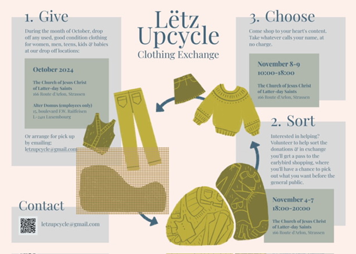 Letz Upcycle is hosting free “shopping” days on 8-9 November at 166 route d’Arlon in Strassen. After collecting donated clothes throughout October, organisers are opening their doors to anyone to come by, browse, and take what they need—no charge, no need to have donated. It’s a simple way to give clothes a second life and keep them out of the landfill.