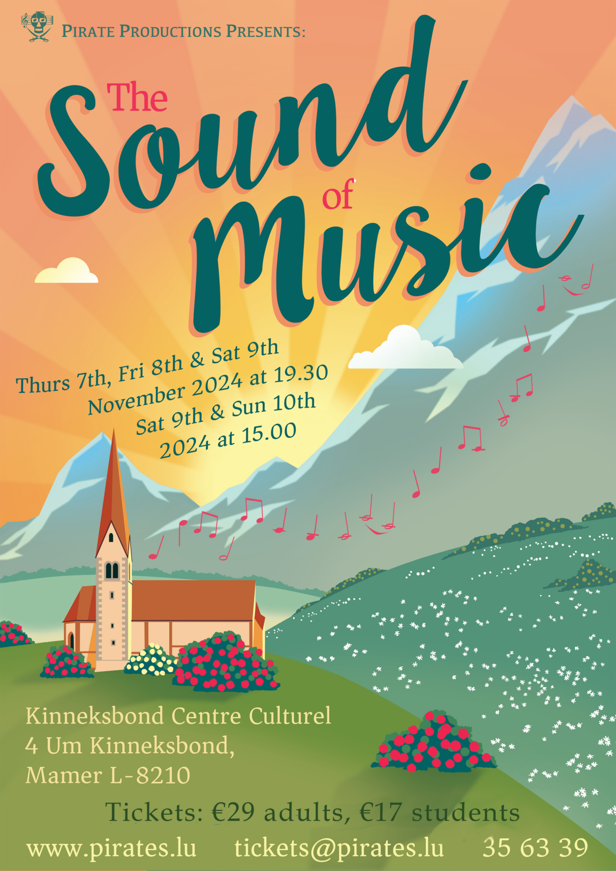 It’s getting fresh outside, so the perfect weekend for another play performed by Luxembourg’s English-speaking musical theatre group: The Sound of Music follows Maria, a spirited governess who transforms the lives of seven children and their widowed father in 1938 Austria, as they face the threat of the Nazi regime. With iconic songs like “Do-Re-Mi” and “My Favorite Things,” this beloved musical won multiple Tony Awards and became an Oscar-winning film starring Julie Andrews.