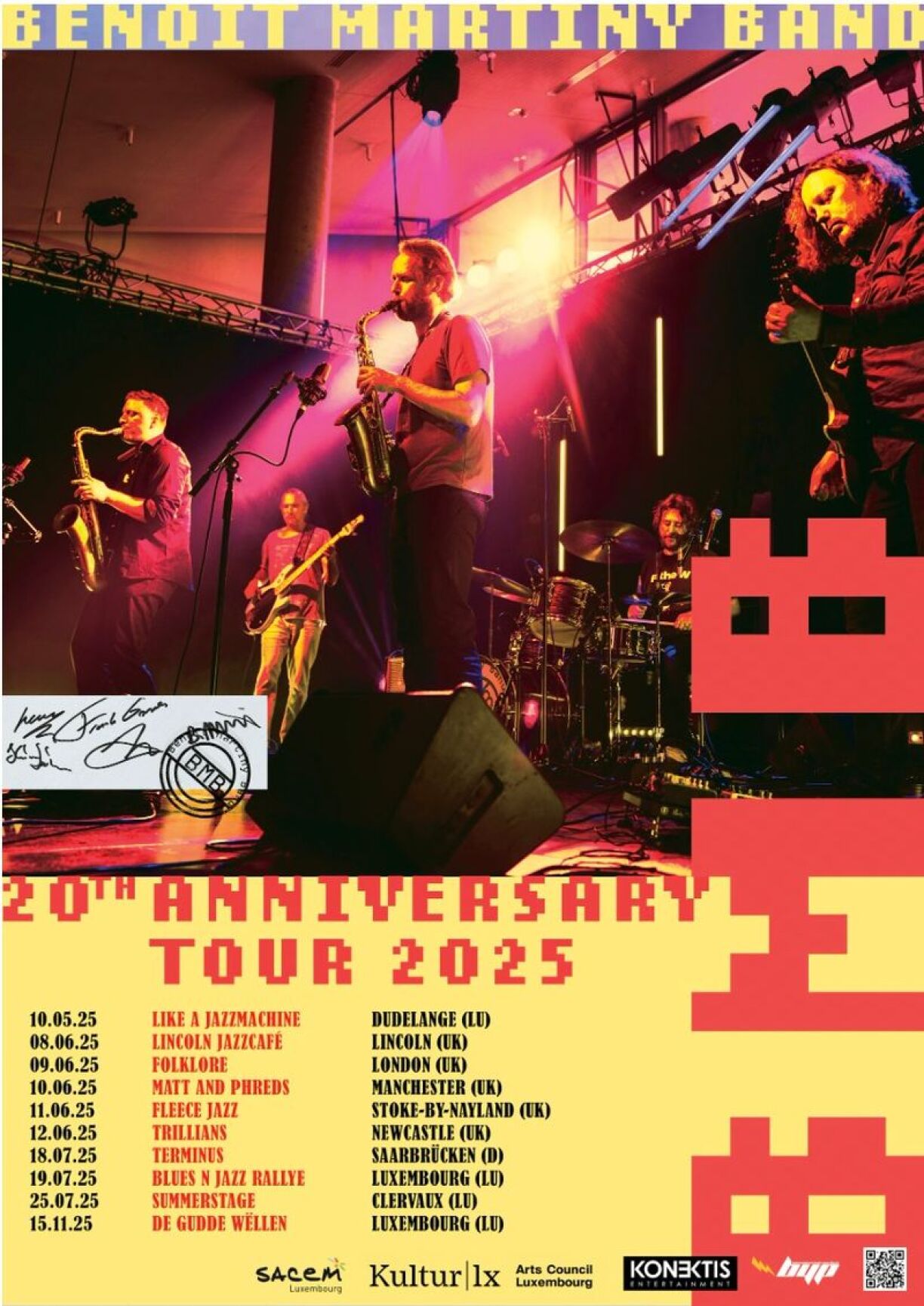 Two decades of jazz’n’roll – that’s something worth celebrating! The Benoit Martiny Band (BMB) mark their 20th anniversary with a live tour and the release of BMB Live in Germany, capturing the raw energy and spirit of a band that’s played from Luxembourg to Japan and beyond. Blending Hendrix-style fire with Mingus-inspired groove and Zappa-esque chaos, BMB’s sound is fearless, wild, and unmistakably their own. Join them for the final party of the year at De Gudde Wëllen.