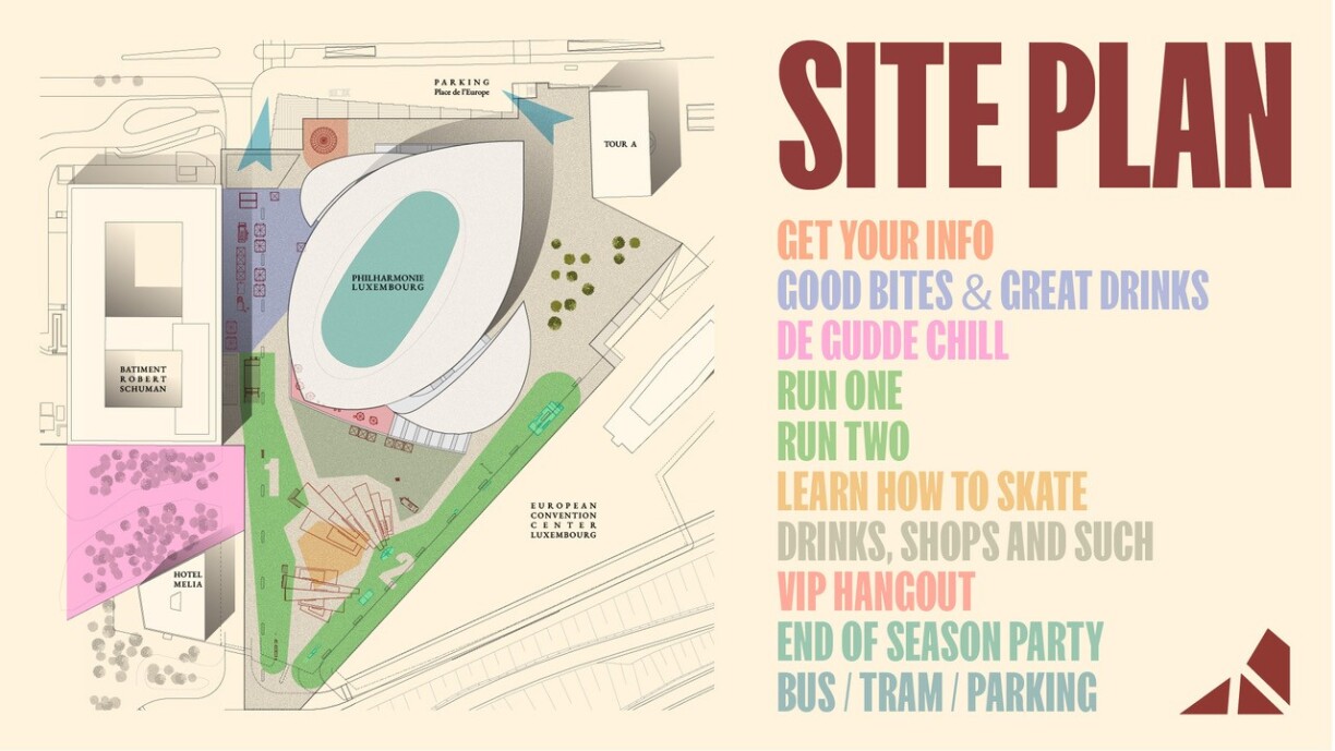 Things will kick off at 11 am on Saturday with free skate lessons for all ages. The food village will have something for everyone and Hennessey has already started laying a basketball court as part of the event. RTL Today Radio will be there playing cornhole and we hope anyone and everyone will stop by. At 7:30 pm there will be an apero in front of the philharmonie and following the apero, there will at 9:30 there will be an after party under the trees which will be put on by de gudde wellen.