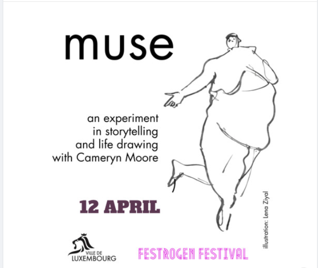 Join the award-winning playwright/performer Cameryn Moore for an unforgettable interactive art-making experience. You have a drawing board, a stack of paper, and a piece of charcoal. She has no clothing, strong muscles, and a lot to say. What will you discover together?