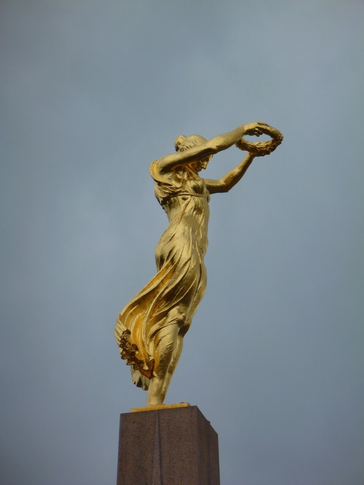 Like so many other statues of women, the Gëlle Fra, aka the golden lady on the Place de la Constitution, represents a symbol rather than an actual human being. So the question really should be what she represents rather than who she is. The statue represents Nike, the goddess of victory, also known as the “Queen of Freedom” or “Friddenskinnigin” in Luxembourgish.