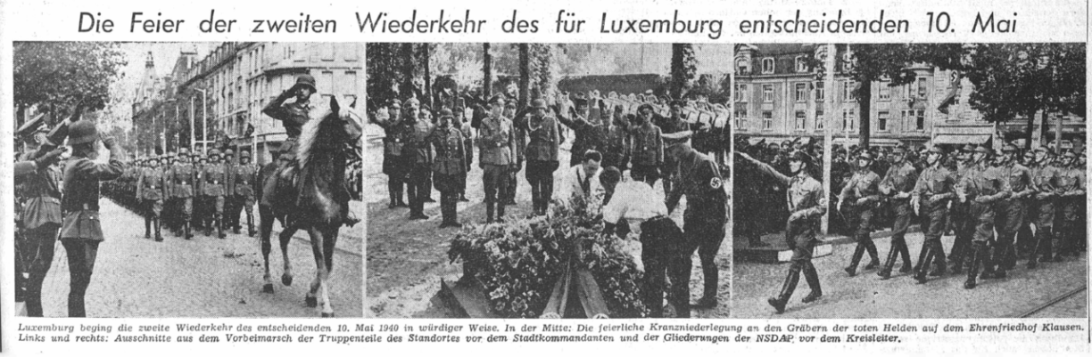 One of the most telling indications that the Wort was under the control of the Nazis was the coverage of the German invasion’s anniversary. The paper described it as the second anniversary of the German return, writing: “The second anniversary of German troops marching into Luxembourg and defending against the enemies of this ancient German land could not be more logically and worthily celebrated than by honouring brave German soldiers responsible for the preservation of Luxembourg in the face of an enemy attack, who experienced heroes death in the face of destruction and celebrated by the thank you of the German-conscious Luxembourgers recognising their heroic actions in opening Luxembourg to the Greater German Reich on 10 May 1940.”