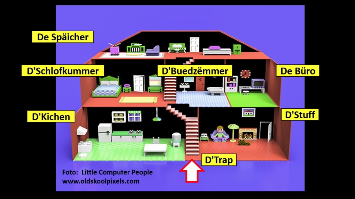 “Jérôme’s House” is an engaging and interactive graphic adventure game that requires a basic understanding of Luxembourgish, preferably at the A1 to A2 level.