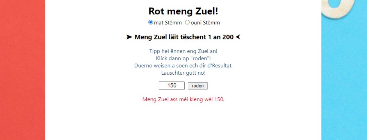 In collaboration with Emanuele Prestifilippo, an IT consultant and Scrum Master, Lulling has launched a new online game called “Zuel”. The game is designed to help learners practice their Luxembourgish number skills in a fun and interactive way. Based on the popular online game “Guess My Number”, “Zuel” features audio files for each number from 1 to 200, allowing learners to see and hear the pronunciation of each number.
