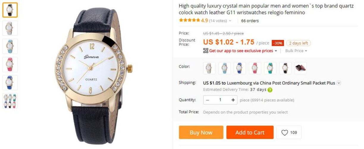 As you can see, this seller (one of many) on AliExpress is selling the same watch for $1.02 plus $1.05 shipping - meaning that you’re overpaying by $15.88, and will receive what is essentially a novelty item.